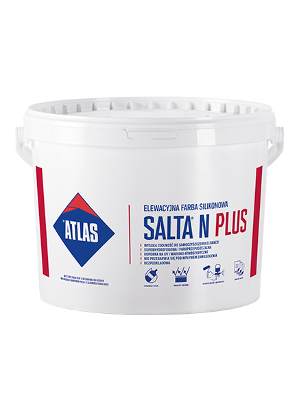 La peinture ATLAS SALTA N PLUS est le produit de la classe PREMIUM de la plus haute qualité à base de résine de silicone, de siloxanes, d'hydrophobines siloxane réactives, de substances hydrophobes naturelles, de dispersion de polymère, de pigments organiques et inorganiques, de modificateurs et d'additifs hydrophobes.