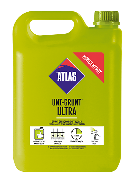 - ATLAS UNI-GRUNT est produit comme une émulsion prête à l'utilisation directe. Ne jamais le joindre avec d'autres produits ni le densifier, on peut uniquement le diluer en proportion 1/1.