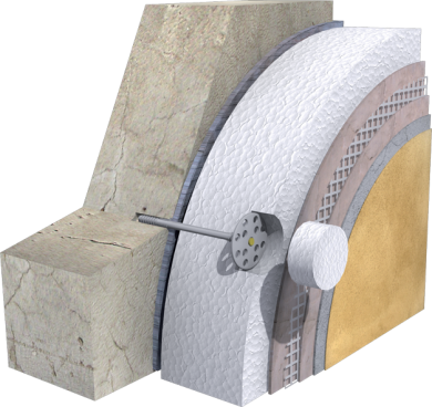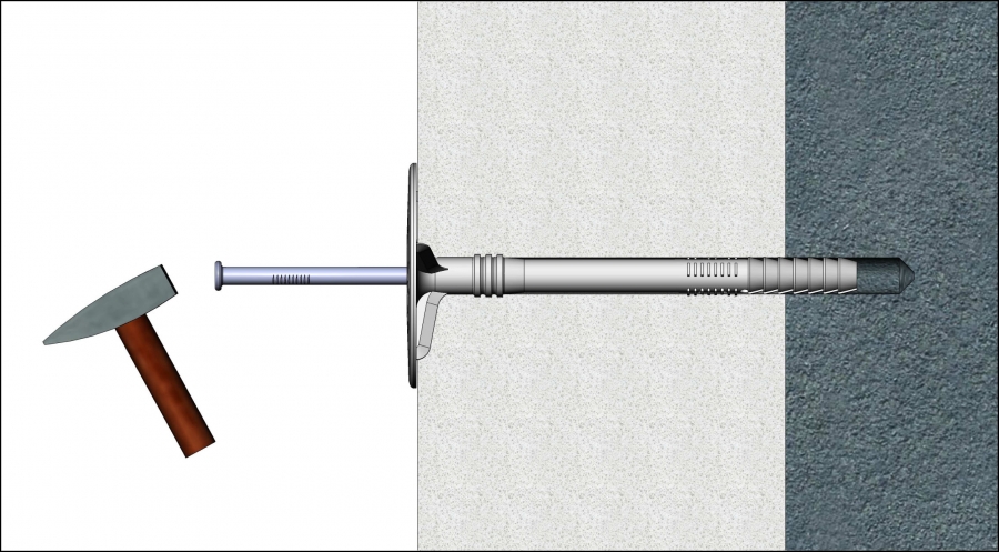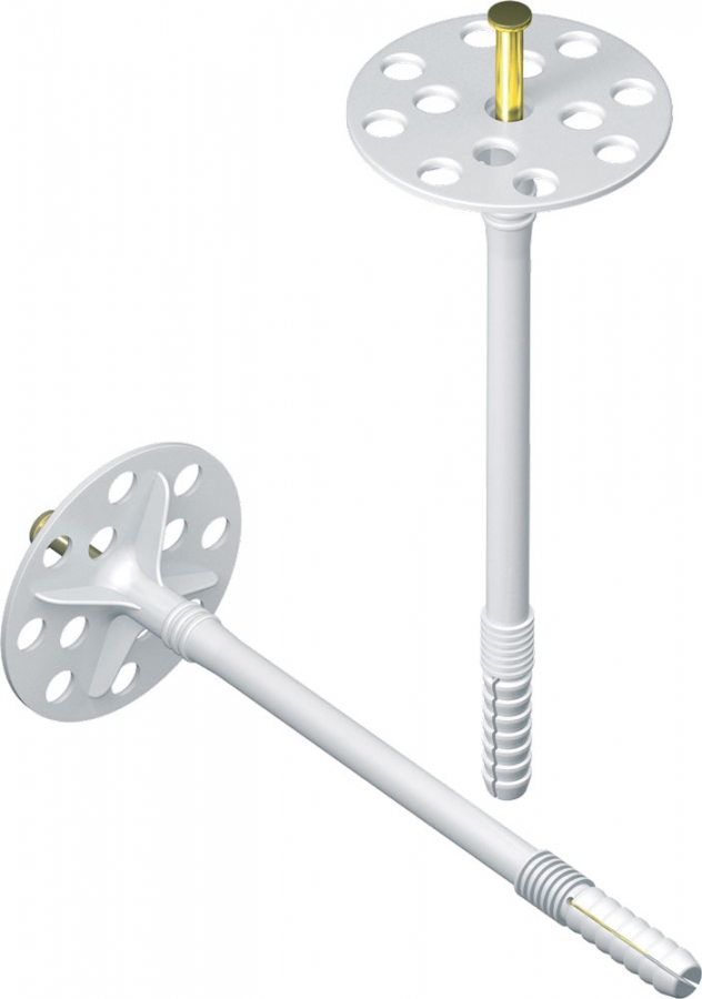 Chevilles d'isolation nylon avec clou d'expansion nylon renforcé fibre de verre, préconisées pour les isolations thermiques par l'extérieur de panneaux polystyrène, laine minérale et isolants légers sur matériaux pleins (béton, brique pleine, pierre…).