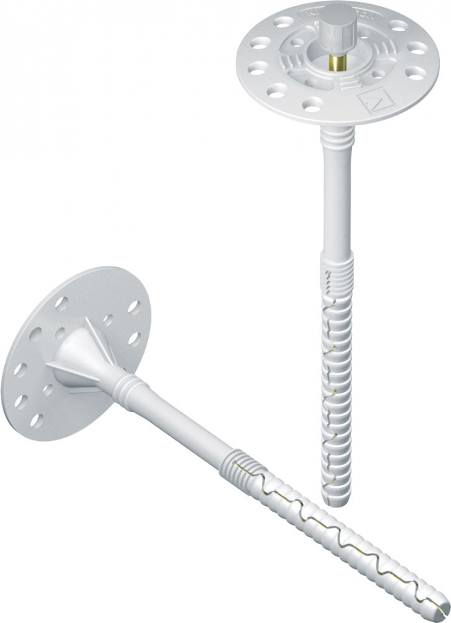 Chevilles d'isolation nylon avec clou d'expansion nylon renforcé fibre de verre, préconisées pour les isolations thermiques par l'extérieur de panneaux polystyrène, laine minérale et isolants légers sur matériaux pleins (béton, brique pleine, pierre…).