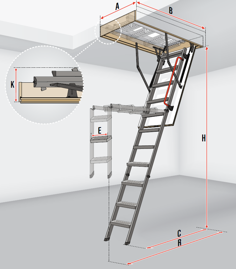 | Hauteur d’escalier fermé | K [cm] | 25.5 | ||||||