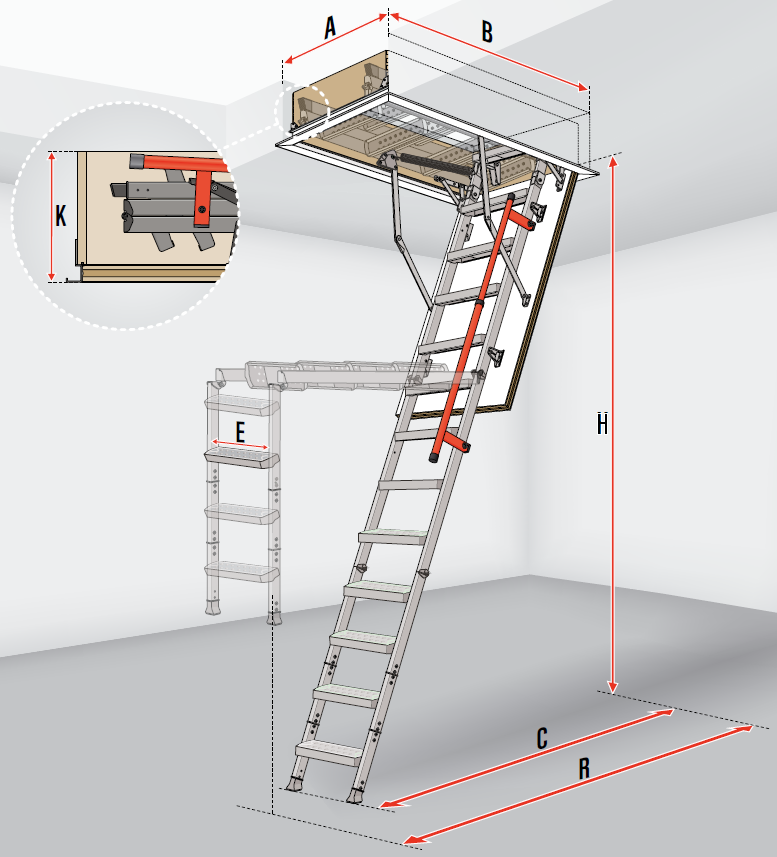 Les escaliers escamotables LML, avec échelle métallique ont été conçus pour offrir un maximum de confort, tout en simplifiant le processus de montage, et le réglage de la longueur de l’échelle, en fonction de la hauteur de la pièce.
