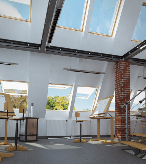 La construction de la fenêtre permet de s'approcher de la fenêtre ouverte et donne une large vue vers l’extérieur. Les dimensions de la fenêtre et la capacité à soulever l'ouvrant garantissent un accès au toit pour la maintenance, la réparation ou la fuite en cas d'urgence. Le vitrage de la fenêtre se compose de verre extérieur trempé et de verre intérieur laminé qui permet de manier la fenêtre en toute sécurité.