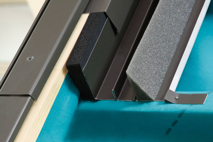 Les raccordements FAKRO s'adaptent à tous les types de matériaux de couverture et permettent d'intégrer les fenêtres dans la pente du toit de manière simple et étanche. La conception des raccordements permet une évacuation sûre de l'eau de pluie et de la neige à l'extérieur de la fenêtre, tout en maintenant la distance de montage définie par les instructions entre la fenêtre et la toiture.