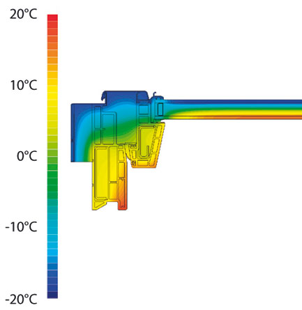 Le raccordement en version Thermo avec isolation supplémentaire est une solution idéale qui garantit une connexion étanche et "chaude" de la fenêtre avec la couverture du toit. Il permet d'appliquer l'isolation de la fenêtre au-dessus du niveau des lattes. Sur la face intérieure du raccordement est collé un matériau isolant flexible qui adhère étroitement au cadre de la fenêtre, constituant ainsi un cadre thermo-isolé. Le matériau thermo-isolant présente d'excellentes valeurs d'isolation (coefficient ג ). Sous le niveau des lattes, la fenêtre est isolée par un kit d'isolation en laine XDP. Le raccordement thermo introduit augmente la valeur U de la fenêtre jusqu'à 15% selon le type de fenêtre, évitant ainsi les ponts thermiques et les pertes de chaleur.