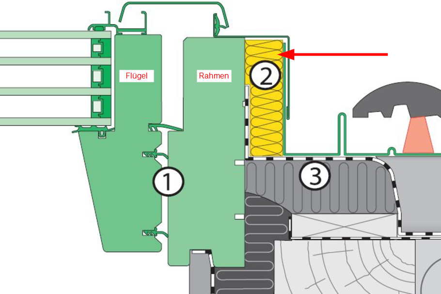 Le raccordement et le profile de la fenêtre sont fabriqués en série en tôle d'aluminium sans entretien de couleur grise (RAL 7022).