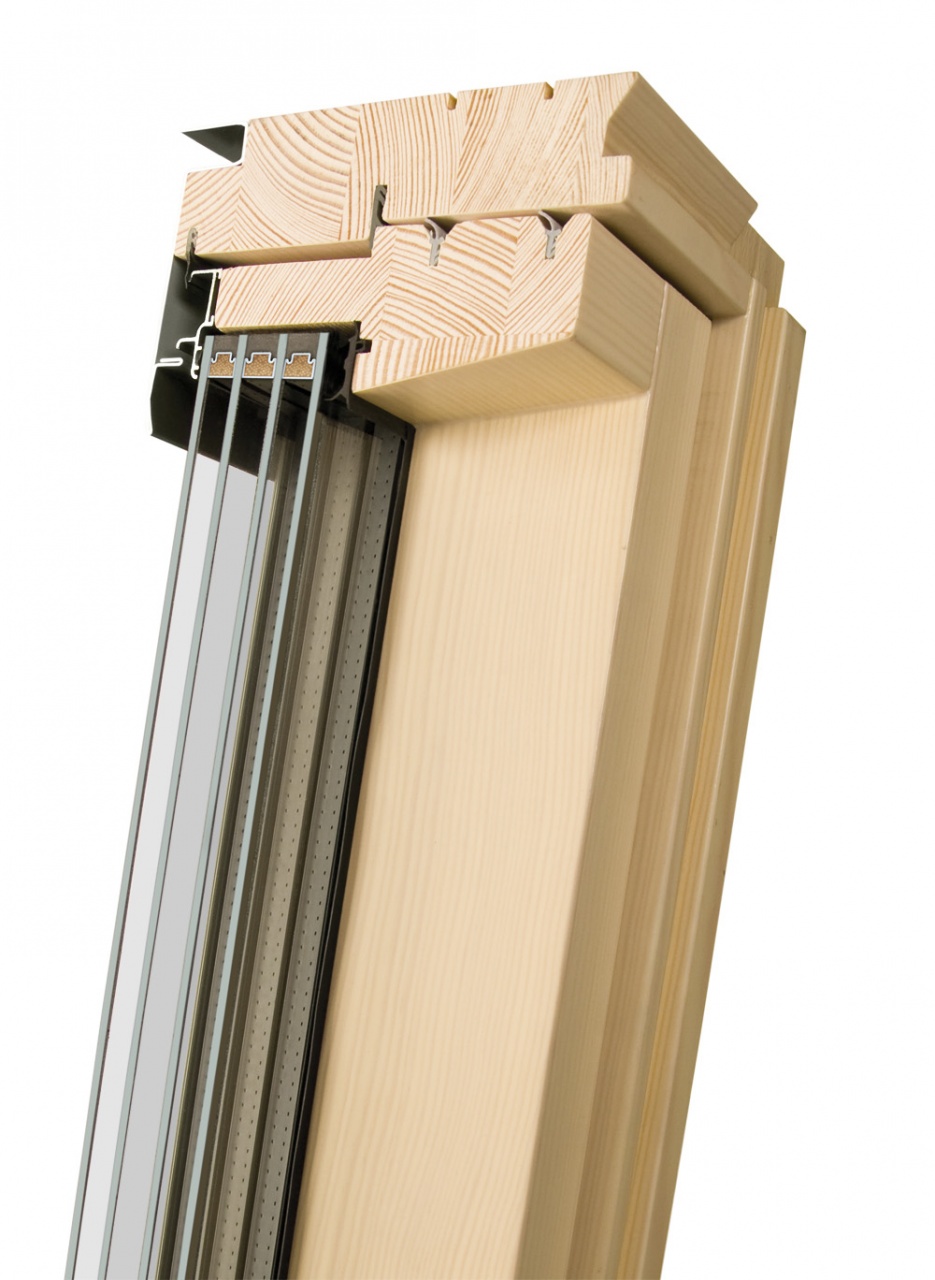 La fenêtre de toit FAKRO FTT U8 est une fenêtre avec une structure innovante. Elle est conçue pour les chambres climatisées avec un système de ventilation mécanique et pour les bâtiments passifs. Elle garantit l’économie d’énergie. La structure innovante de la fenêtre se caractérise par le fait que son vitrage est fixé aux cadres spécialement conçus. En comparaison avec les fenêtres standard, leurs profilés en bois sont plus larges. Une telle conception assure l’amélioration de l'isolation de la fenêtre. Cette nouvelle fenêtre offert un mécanisme modifié de fermeture. Après avoir tourné la poignée, l'ouvrant est fermé dans deux côtés du cadre en toute sécurité.