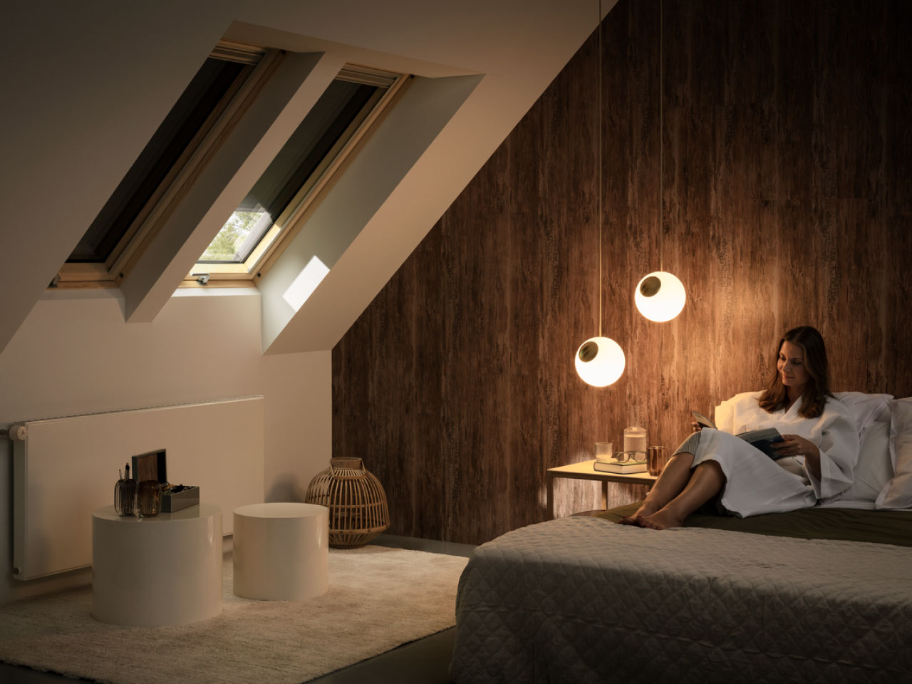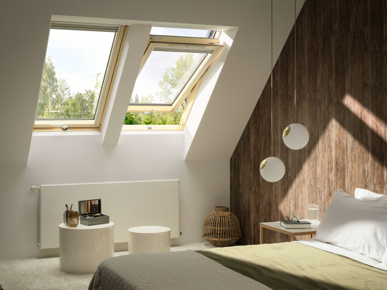 La fenêtre de toit GLL de VELUX est une fenêtre de toit de pivotement central, à rotation, fabriquée en bois, avec une poignée élégante en partie basse de l'ouvrant pour le maniement confortable. Cette fenêtre de toit est recommandée lorsqu'il est nécessaire d'installer la fenêtre plus haut, par exemple en raison d’un mur d'angle élevé.