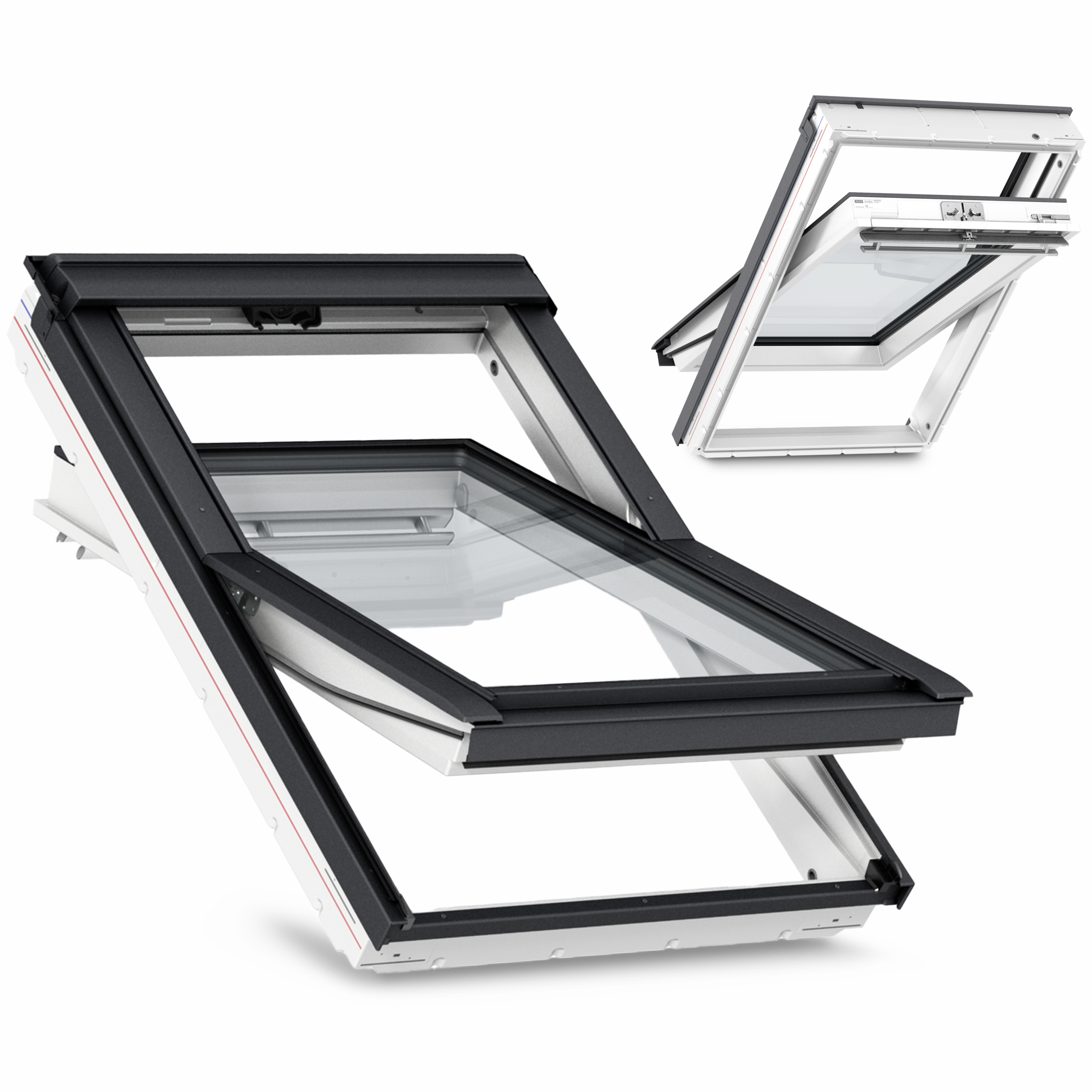 Cette fenêtre de toit à ouverture par rotation joint tous les traits de notre fenêtre principale de pivotement central avec le revêtement en polyuréthane pour protéger le noyau en bois contre l'humidité.
