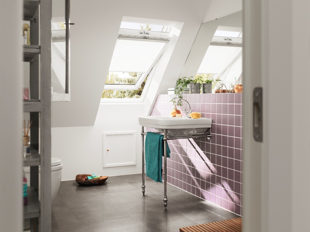 Ouvrez votre salle de bain, votre cuisine ou toute autre pièce où vous avez besoin d'une grande résistance à l'humidité avec la fenêtre de toit GLU de pivotement central avec le revêtement en polyuréthane étanche à l'eau. Les fenêtres blanches de VELUX sont idéales pour créer des apparences propres et stylés.
