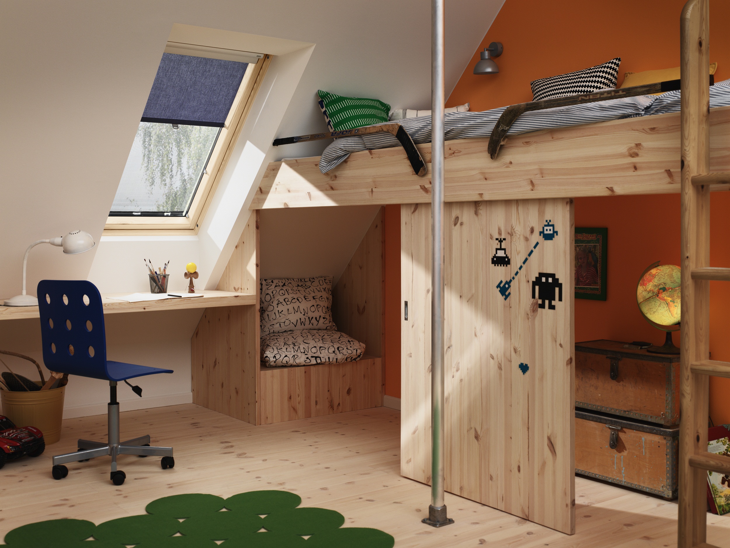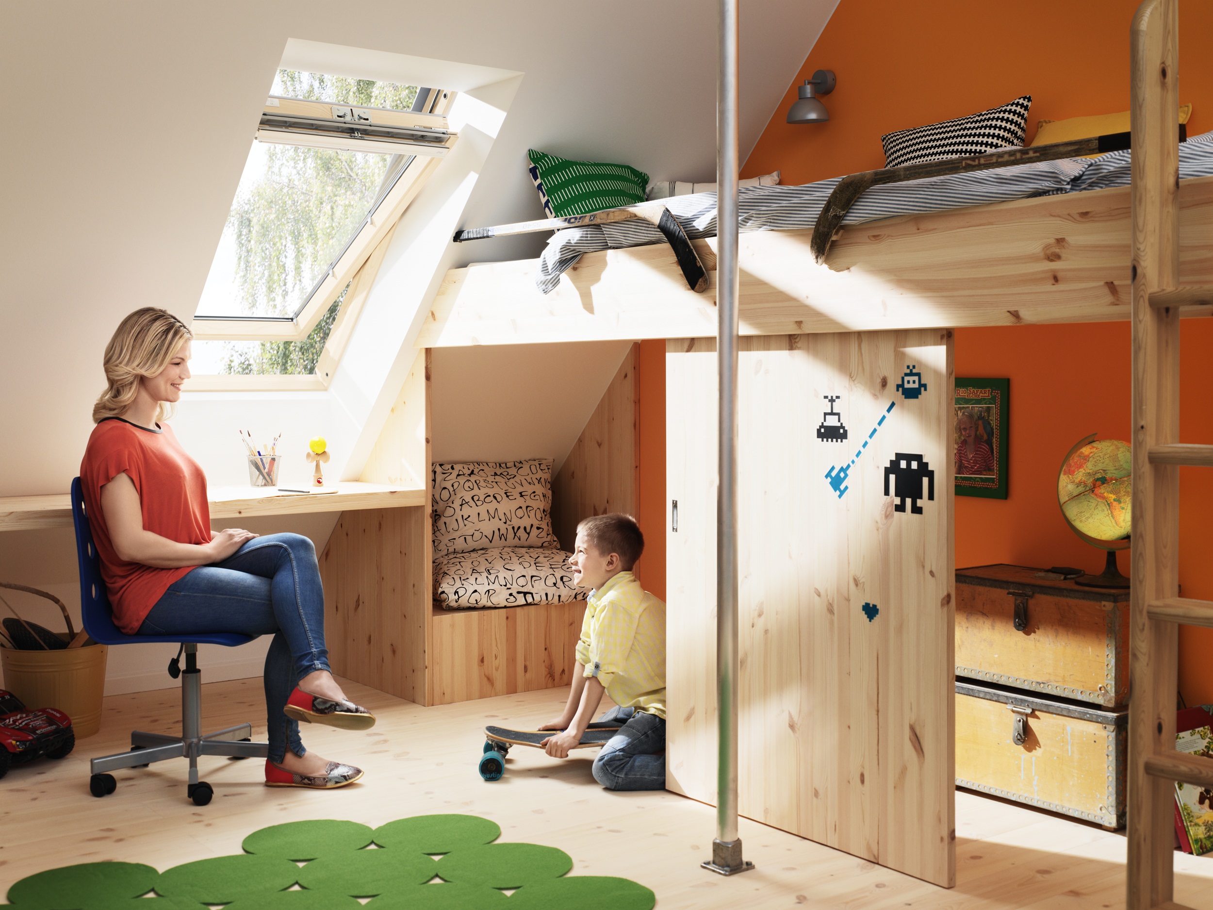 La fenêtre de toit GZL de VELUX est une fenêtre de toit de pivotement central avec la finition en pin et la barre de manœuvre pour le maniement confortable. Le design amélioré permet d'ouvrir et de fermer la fenêtre avec une seule main. La barre de manœuvre dans la partie supérieure rend la manipulation facile même si les meubles sont placés directement en dessous de la fenêtre.