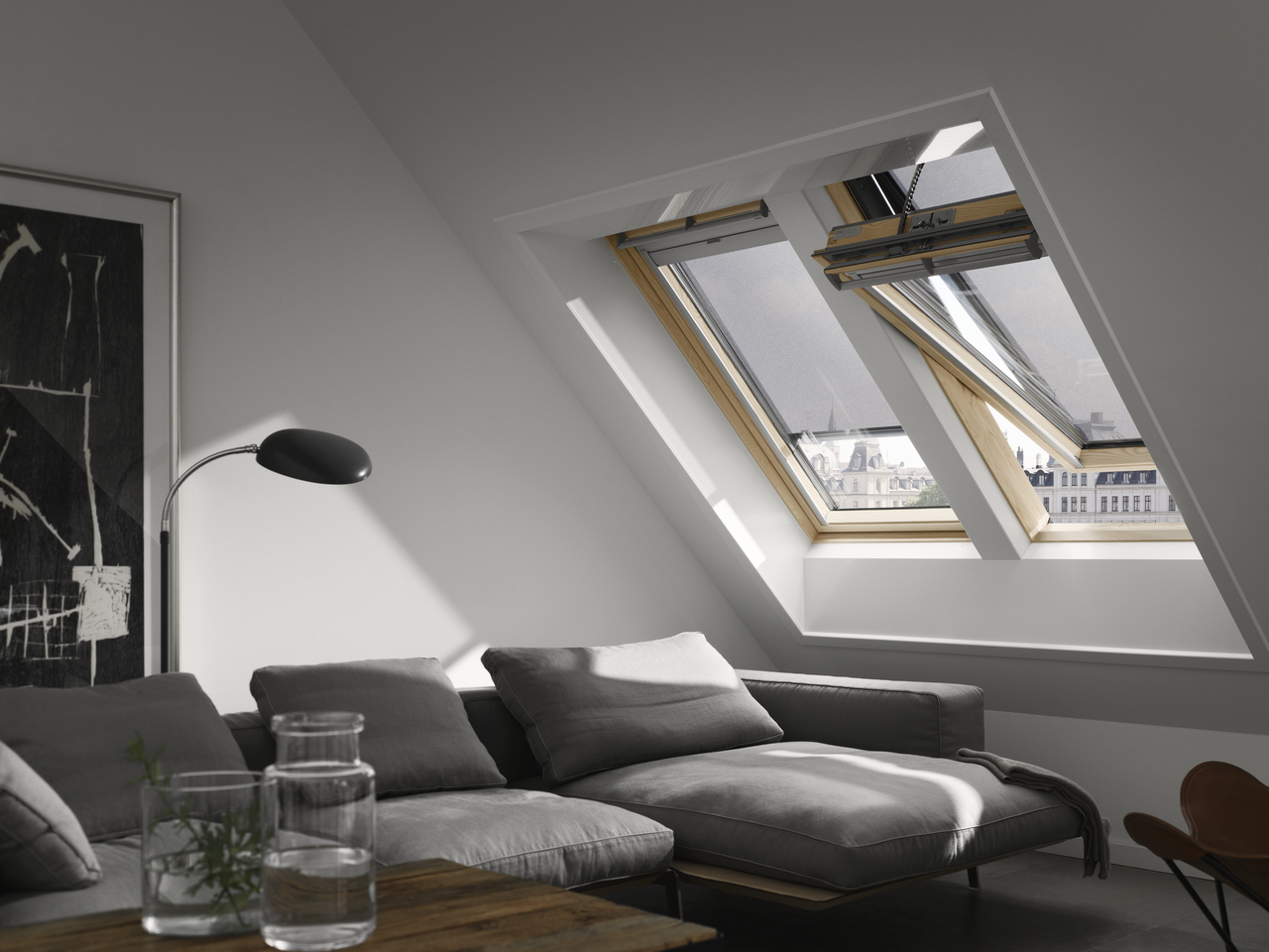 La fenêtre de toit GLL de VELUX est une fenêtre de toit de pivotement central, à rotation, fabriquée en bois et équipée de barre de manœuvre pour le maniement confortable. Le design amélioré permet d'ouvrir et de fermer la fenêtre avec une seule main. La barre de manœuvre en partie haute de l’ouvrant rend la manipulation facile même si les meubles sont placés directement sous la fenêtre. Vous pouvez continuer à utiliser confortablement la fenêtre et ses fonctionnalités (p.ex. ventilation, stores) sans gêne.