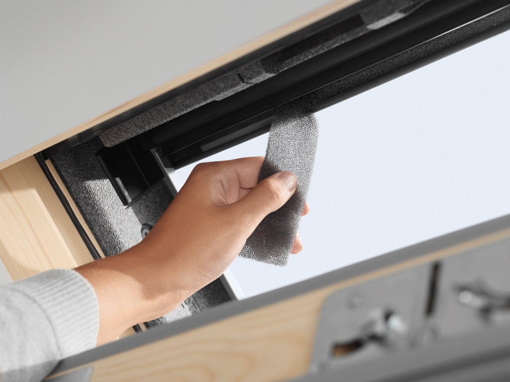 La fenêtre de toit GLL est équipée de clapet de ventilation intégré. Ce clapet unique permet à l'air frais d’entrer dans la pièce à travers un filtre qui bloque la poussière, les insectes et la neige poudreuse même lorsque la fenêtre est fermée. Cette fenêtre de toit est donc idéale pour les jours pluvieux.