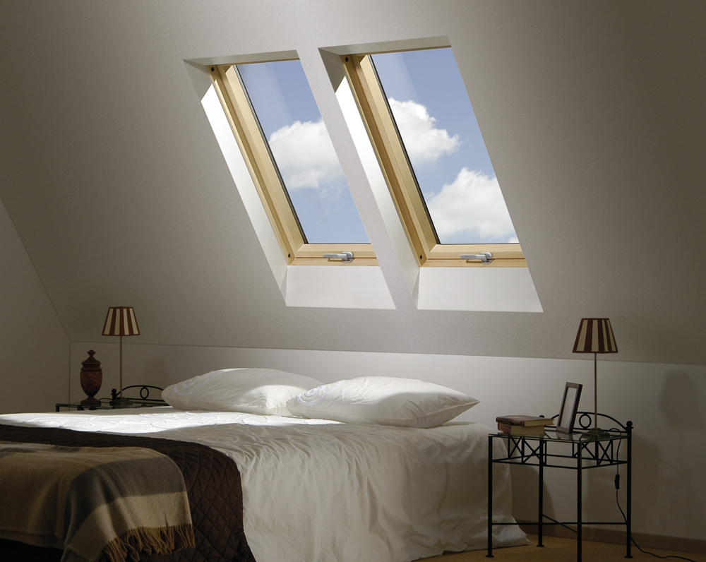 Les fenêtres de toit FTS-V U2, les fenêtres à rotation, constituent un type populaire de fenêtres de toit FAKRO. Ses charnières sont bien placées à mi-hauteur de la fenêtre ce qui rend possible de la manier confortablement – non seulement de la pivoter, mais aussi de l'ouvrir vers la gauche. L'ouvrant bascule à 180 degrés. Quand il est fermé, il permet la facilité et la sécurité du nettoyage de la vitre extérieure. Bien plus, la poignée possède deux niveaux de micro-ouverture qui se trouvent à la partie inférieure du cadre. Comme l’entrée d'air est positionnée à la partie supérieure du cadre, la surface des fenêtres de FAKRO est jusqu’à 6 % plus grande que les fenêtres de taille similaire provenant d'autres fabricants. Ceci augmente donc la quantité de lumière entrant dans la chambre.