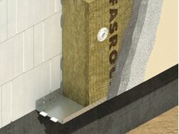 Rockwool Frontrock Super est une laine minérale à double densité pour les systèmes de murs extérieurs avec d'excellentes performances de conductivité thermique et avec une absorption acoustique élevée. Elle peut être utilisée pour les systèmes avec toutes sortes de revêtements de finition - légers ou lourds, fins ou épais. L'avantage de Rockwool Frontrock Super est le fait que la surface extérieure, qui est visiblement marquée, est fortement comprimée. Sutenue par des fixations mécaniques, Frontrock Super peut convenir aussi pour des charges extrêmement lourdes. Grâce à sa valeur lambda (0036 W / mK), nous avons atteint une meilleure valeur U (de 15%) pour le mur extérieur.