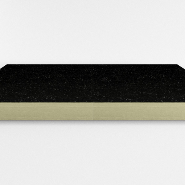 Le panneau est recouvert d'un revêtement en bitume (BT). L'âme du panneau est en mousse rigide de polyisocyanurate (PIR) avec de très bonnes propriétés d'isolation et de résistance au feu.