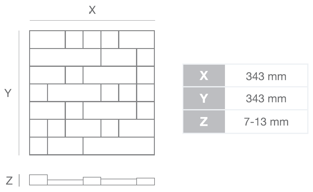 | Plaquette | 345x345x15 | 4 | 0,47 m2 | 3,5 kg |