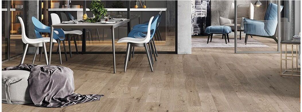 Bowfell Oak est une planche simple de 155 mm de large dans une délicate nuance de frêne avec des éléments de bois visibles. Le micro-chanfrein sur quatre côtés donne au sol une apparence élancée. Brossé, laqué mat.