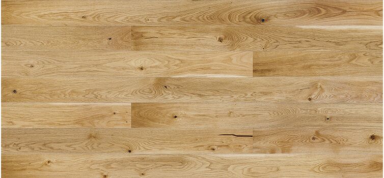 Parquet en chêne avec une belle couleur et diverses caractéristiques en bois Le caractère naturel est mis en valeur par le brossage et le micro-biseau à quatre côtés donne une impression de finesse. Agréable au toucher, grâce à son enduit d'huile naturelle.