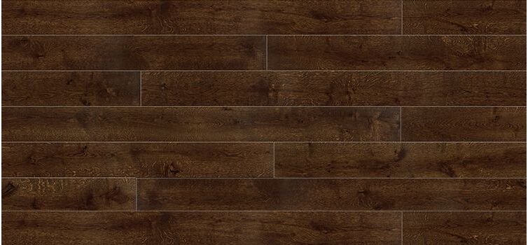 Parquet simple à l'ombre du chêne fumé. Le caractère de la planche est mis en valeur par le brossage. Le tout protégé par une laque mate.