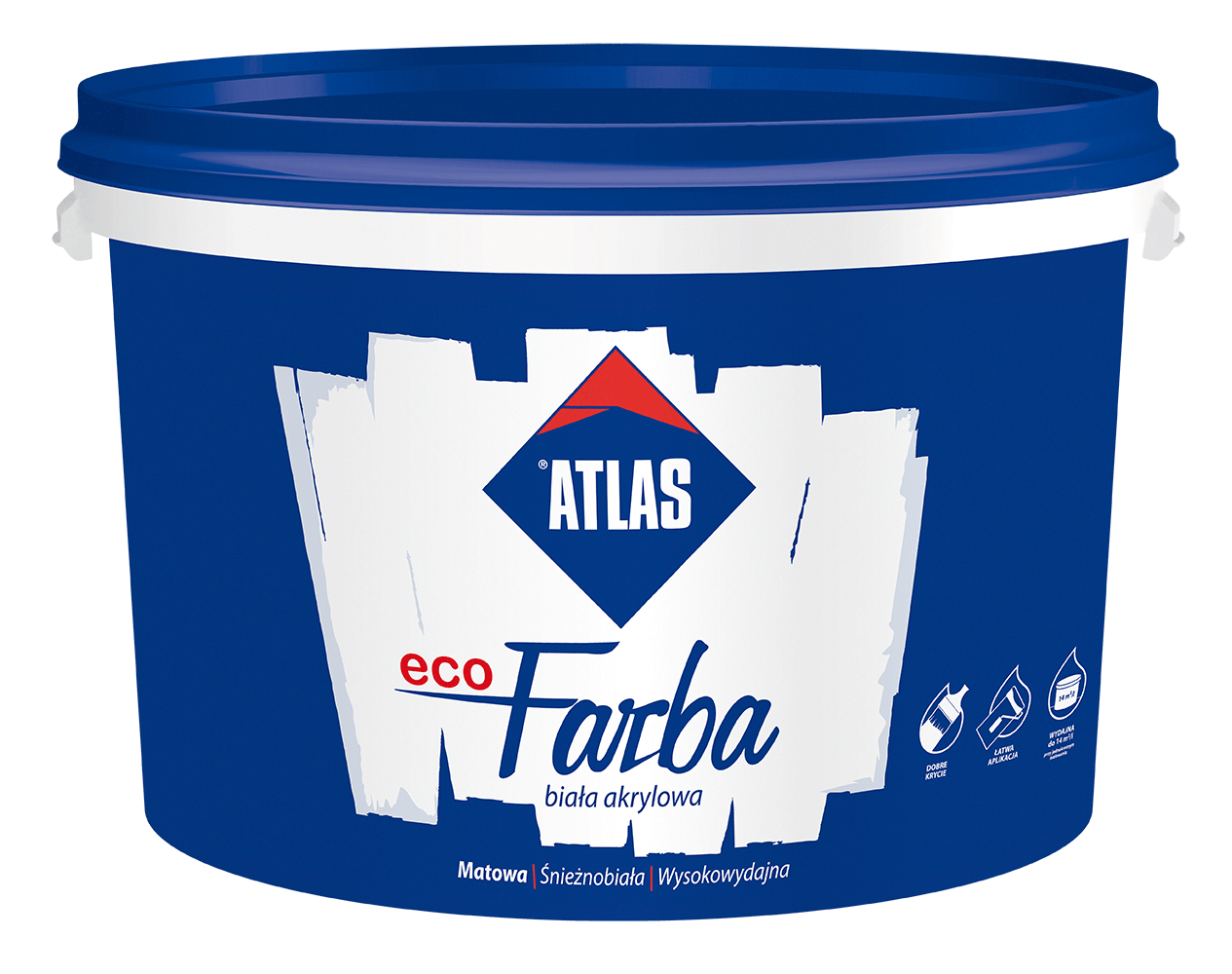 Atlas ecoFarba est une peinture acrylique blanche conçue comme couverture décorative ou protectrice des surfaces des murs et plafonds intérieurs.