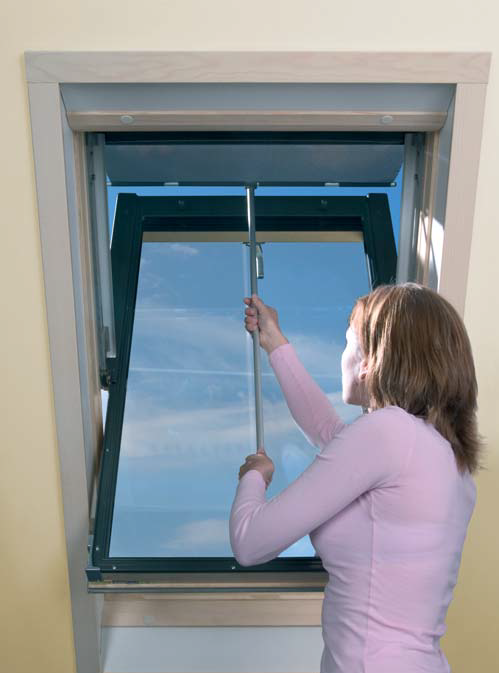 FAKRO ZSZ: La perche pour manier les stores extérieurs FAKRO AMZ est fait en profilé aluminium. Elle possède un embout en plastique qui facilite le maniement des stores dans les fenêtres installées en hauteur.