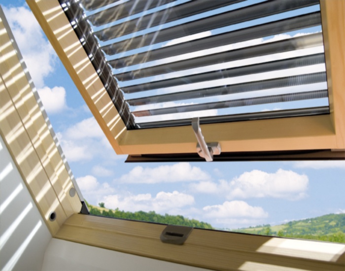 Les volets roulants utilisés pour les fenêtres de toit FAKRO absorbent bien les rayons solaires et protègent l’intérieur contre la canicule ou la surchauffe des pièces et le rayonnement UV. Installé à l'extérieur, ils assurent une protection efficace contre la chaleur d’été. Les lamelles en aluminium, constituant le tablier du volet roulant, possèdent une couche de tissu qui est collé de l'intérieur et qui limite la circulation de la chaleur suffocante.