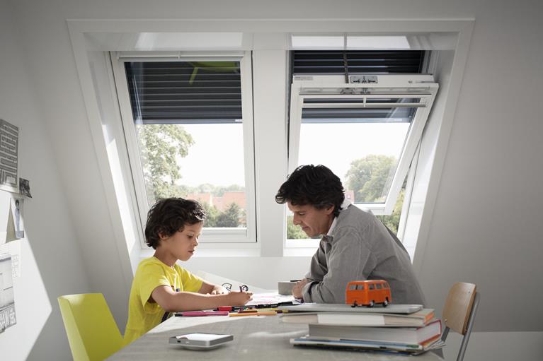 Le volet roulant extérieur, alimenté par l'énergie solaire naturelle et renouvelable, est également contrôlé par un clavier mural. Sa batterie est capable de stocker la quantité d'énergie solaire suffisante pour effectuer jusqu'à 600 cycles de travail - il fonctionnera parfaitement même en l'absence de conditions météorologiques propices à la recharge. On peut équiper le volet de VELUX ACTIVE. Ce système intelligent de climatisation du grenier abaissera automatiquement le volet roulant lorsqu'il recevra des informations de la station météo sur l'approche d'une vague de chaleur ou de pluie - et le relèvera de la même manière lorsque la situation redeviendra normale. De plus, grâce à lui, vous pouvez faire fonctionner les stores de n'importe où dans le monde en utilisant une application sur votre téléphone.